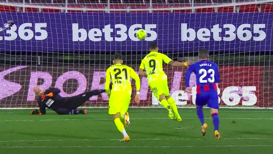 Este suceso no debió sentar nada bien al esloveno, que no sólo tuvo que ver como volvía a encajar desde los 11 metros, sino que encima un compañero de posición lo ejecutó. Pero ahí estaba Luis Suárez para responder por su amigo rojiblanco.