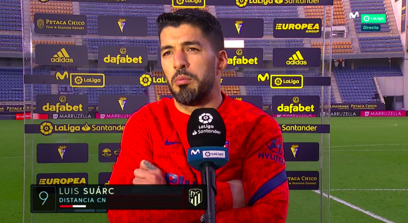 Luis Suárez, protagonista absoluto del encuentro entre Cádiz y Atlético, atendió al club y a los medios de comunicación tras el encuentro, con quienes repasó la situación del equipo, la personal y su espectacular gol de falta.
