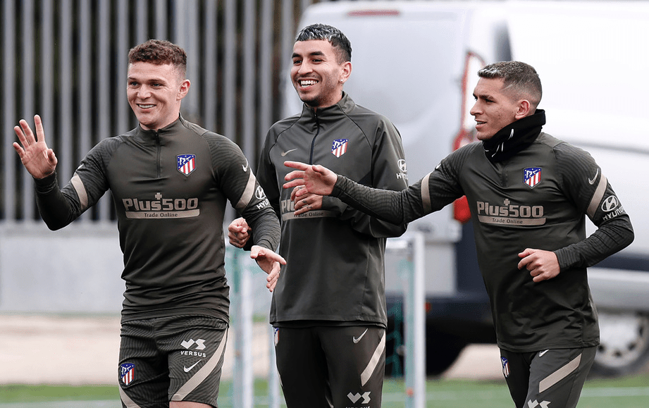 Una mañana de ejercicios, la mayoría orientados al balón, en la que la gran noticia, sin duda, fue volver a ver a Trippier y a Carrasco como parte activa del grupo. El inglés ya puede contar para el Cholo, después de diez semanas sancionado y unas ligeras molestias los últimos días, también el belga, tras superar su lesión.