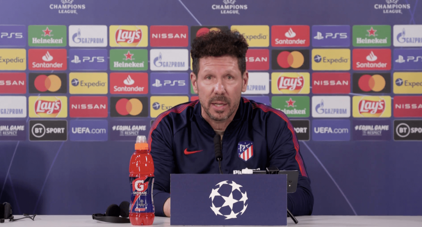 Diego Pablo Simeone atendió a los medios de comunicación, junto a su jugador estrella, Joao Félix, en la rueda de presa previa al encuentro de mañana entre Atlético y Chelsea en Stamford Bridge