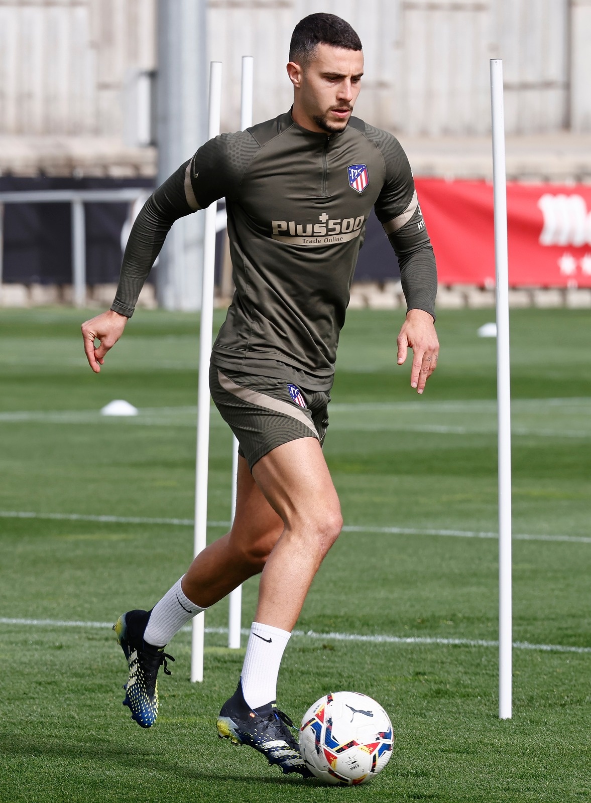 Moussa realizó un entrenamiento en solitario junto al Dr. Villalón, que no perdió detalle. Así mismo, Giménez, aún con molestias, no saltó al verde de de la Ciudad deportiva de Majadahonda.