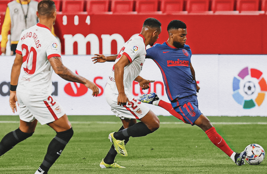 El primer tiempo seguramente no fue como Simeone había planteado. Los rojiblancos no conseguían robar en la salida de balón de los hispalenses y estos dominaban el tempo del encuentro a su antojo, mareando a unos madrileños, que sólo corrían descabezados tras el esférico.