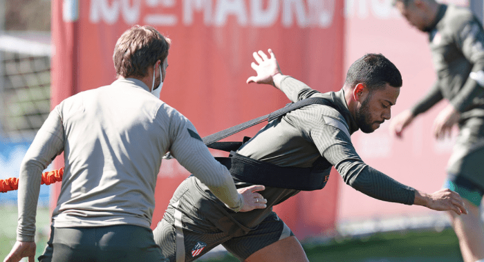 Los titulares realizaron una sesión de readaptación en el gimnasio, mientras que Lodi, Kondogbia, Herrera y Vrsaljko saltaron al césped para hacer una sesión física y posteriormente un partidillo.