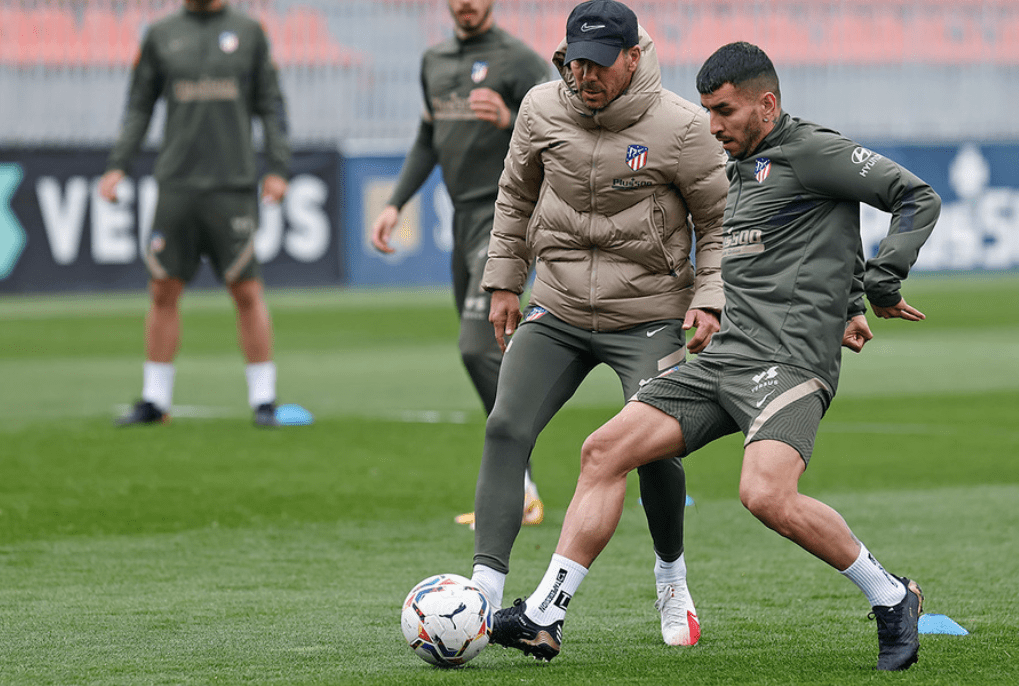 Mermado por las bajas de Marcos Llorente y Luis Suárez, dos hombres fijos en su esquema, aparte de los mejores goleadores del equipo en esta campaña, que se pierden el choque por ciclo de cinco tarjetas amarillas -el uruguayo además añade una lesión muscular-, Simeone repitió este jueves casi toda su idea para armar el once.