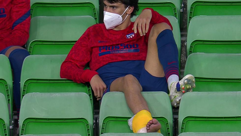 Joao Félix, tras un choque con Mandi al filo del descanso, se resentía del tobillo que le hizo perderse el anterior duelo ante el Sevilla, y a penas duró 2′ después del paso por la caseta, haciendo saltar todas las alarmas en el servicio médico rojiblanco.
