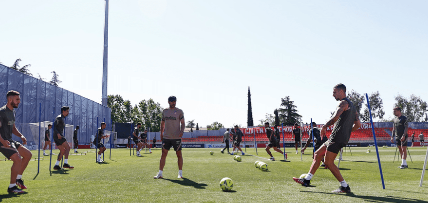 Pocas sorpresas, por no decir ninguna, en el último entrenamiento del Atlético de Madrid antes de visitar el Camp Nou. La plantilla rojiblanca al completo se ejercitó sobre el césped del Cerro del Espino en una sesión en la que el balón y la táctica fueron los protagonistas.