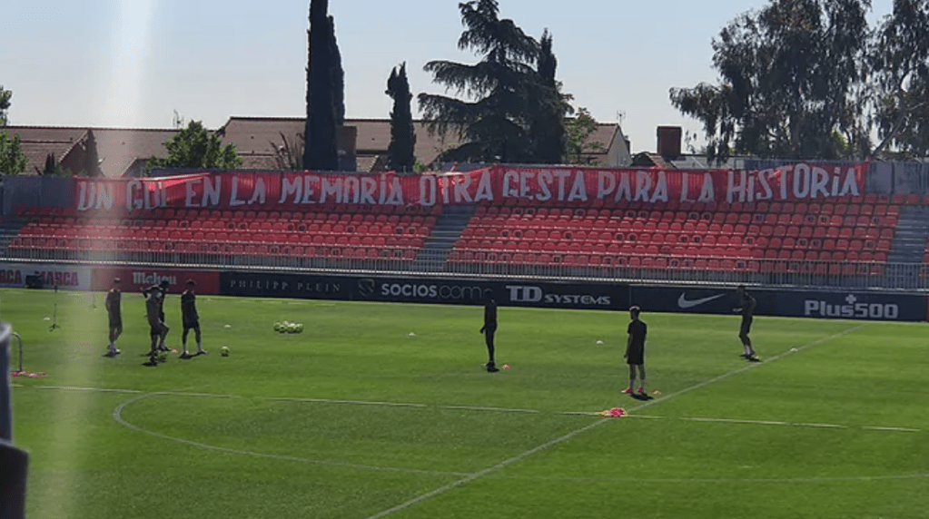 La afición desplegó una pancarta en la que se podía leer «Un gol en la memoria, otra gesta para la historia», un lema que hace clara alusión a la gesta del Atlético en Barcelona de la temporada 2013-14.