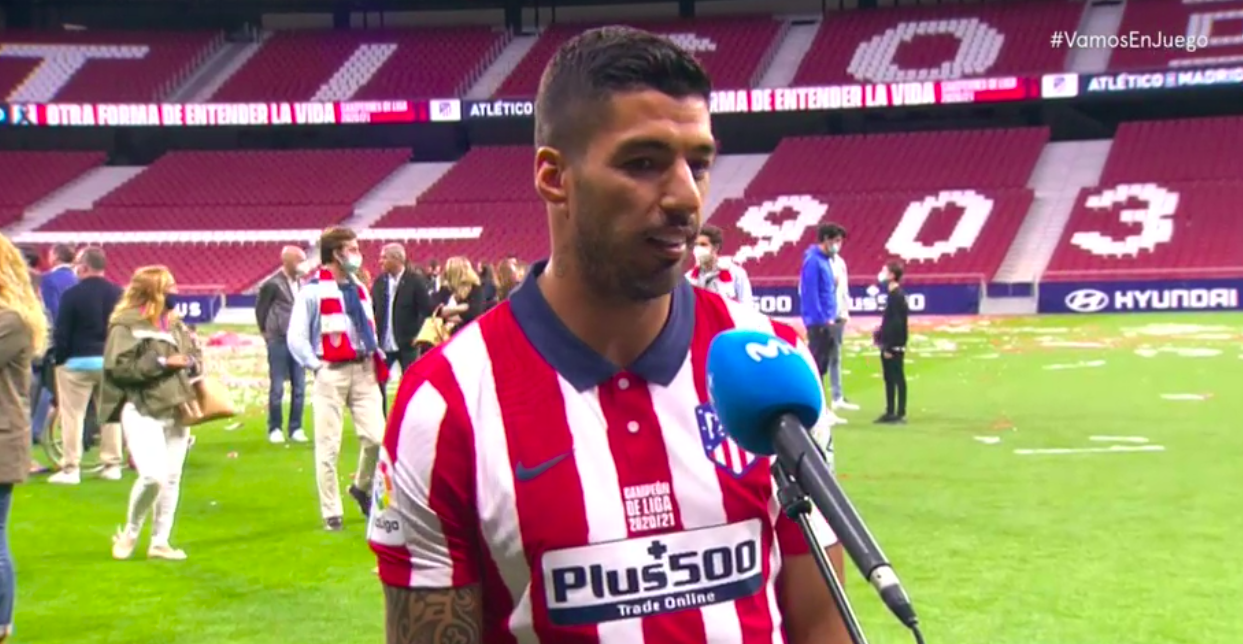 Luis Suárez, pieza fundamental para la conquista rojiblanca de LaLiga, gracias a sus 21 goles, habló para los micrófonos de Movistar+ en el acto de celebración de esta, para repasar su paso por el Atlético y confirmar su continuidad.