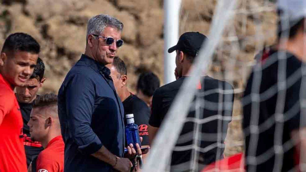 El CEO de la entidad madrileña se desplazó a la comunicada vecina para poner al día a Diego Pablo Simeone y su cuerpo técnico sobre el trueque del verano, el intercambio Girezmann-Saúl.