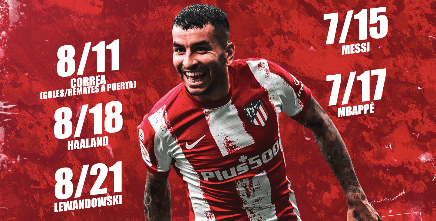 No obstante, no queda ahí la cosa, ya que Correa es, siempre desde la fecha mencionada, el jugador de las cinco grandes ligas que menos remates necesita para anotar (un gol cada 2’6) y el que mayor diferencia tiene entre Goles y Goles Esperados (8G-3.19xG= +4.81).