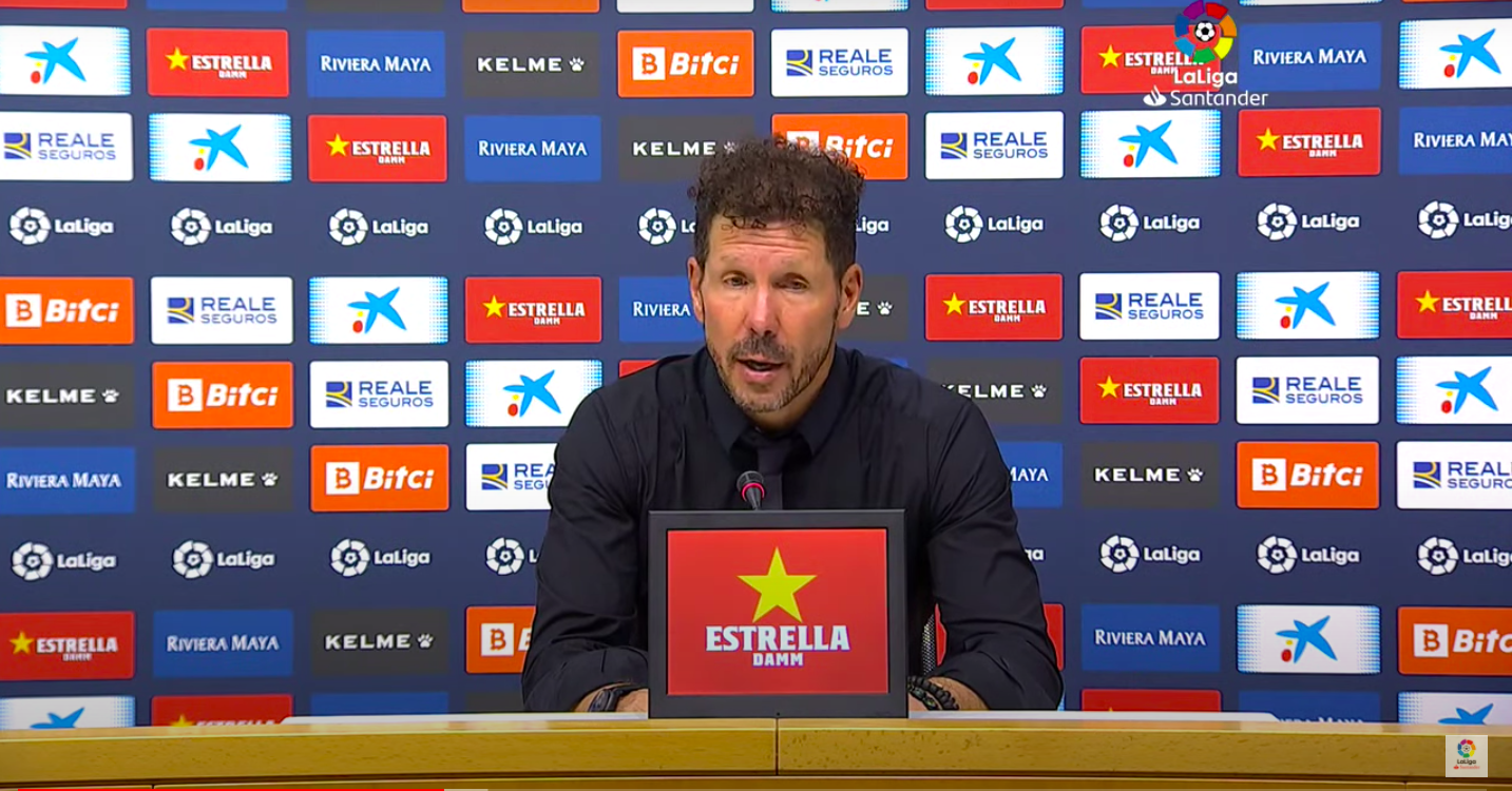 Diego Pablo Simeone atendió a los medios de comunicación tras el partido frente al Espanyol del RCDE Stadium, en el que el Atlético consiguió una agónica remontada en el descuento.