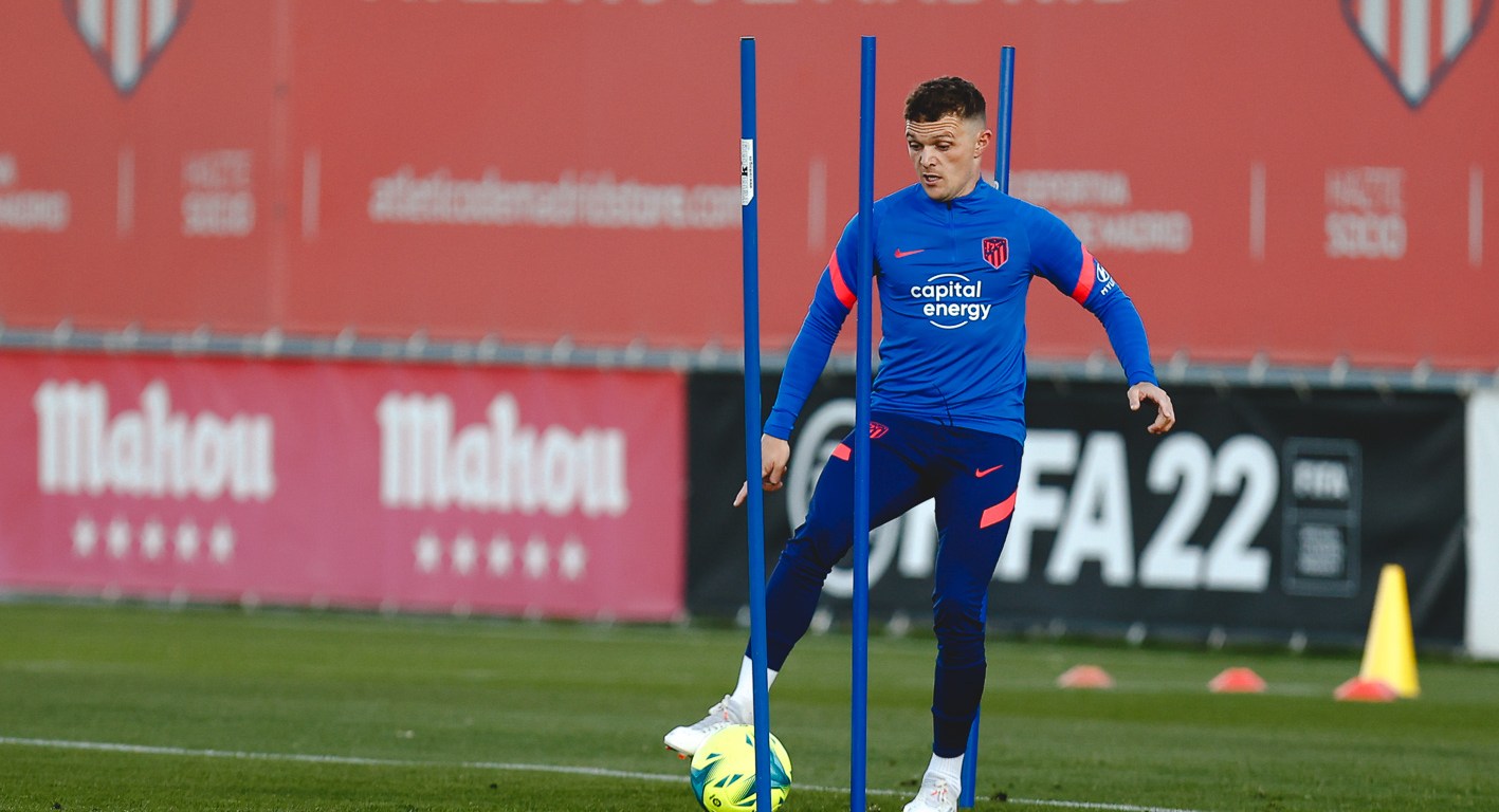 Todo eran sonrisas a la llegada al Cerro del Espino, pero aún fueron más radiantes cuando Trippier saltó al césped con el resto de sus compañeros para ejercitarse.