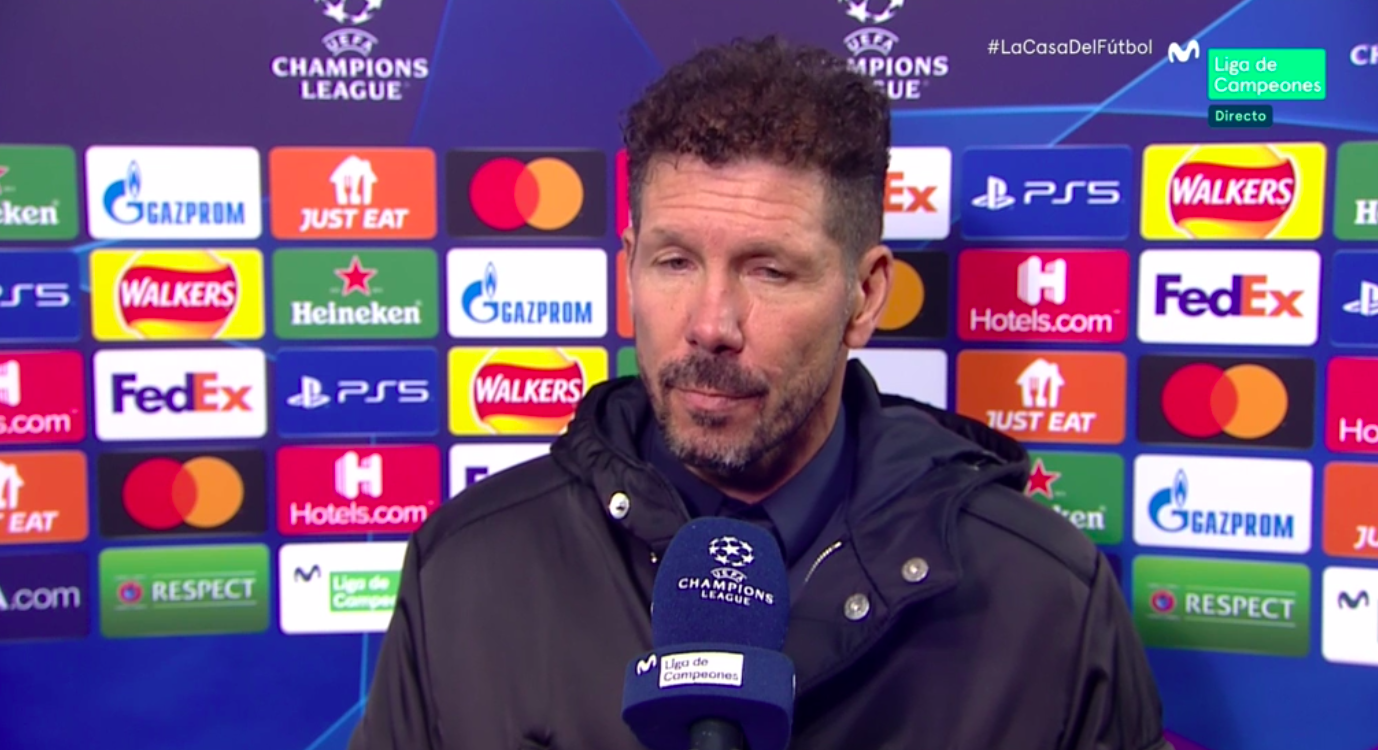 Diego Pablo Simeone compareció ante los medios de comunicación tras el duelo que enfrentó al Atlético ante el Oporto en el estadio O Dragado y que acabó con la clasificación de los colchoneros a octavos de final.