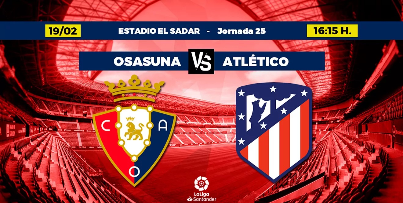 Osasuna y Atlético se enfrentan hoy a las 16:15 horas en El Sadar, en el duelo correspondiente a la retrasada jornada 25 de LaLiga Santander 2021-22. Una fecha en la que los colchoneros buscarán volver a la senda del triunfo tras el traspiés intersemanal ante el colista.
