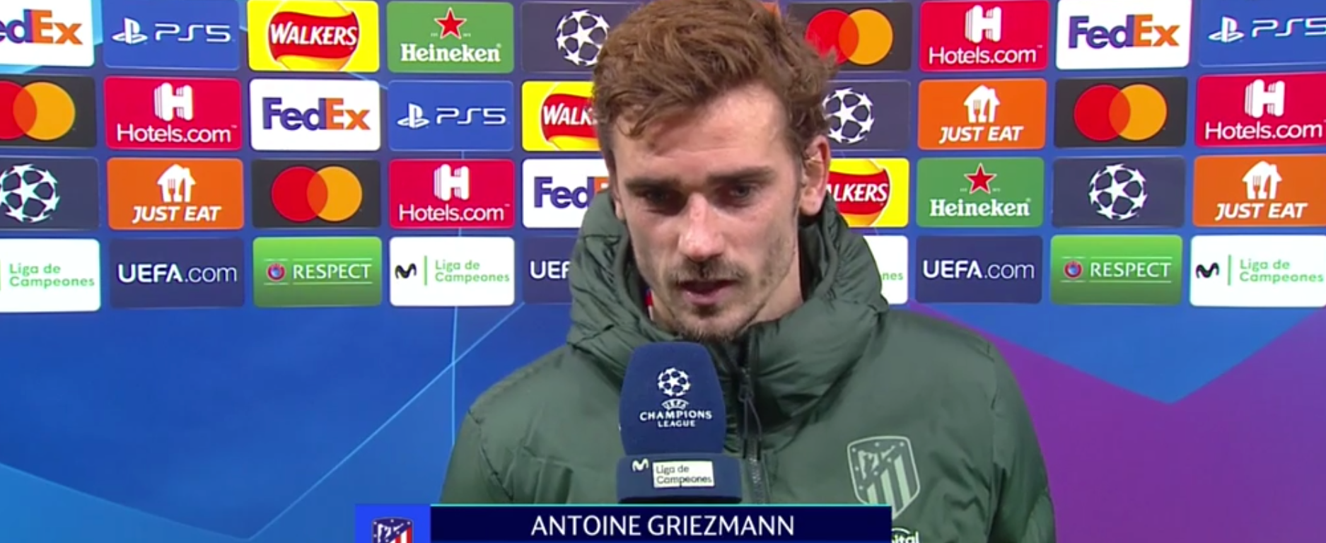Griezmann atendió los medios de comunicación tras el duelo que enfrento al Atlético de Madrid ante el Manchester United en Old Trafford.