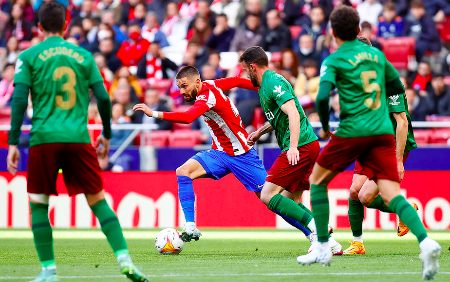 En el 20′ llegaría una buena combinación de los rojiblancos con una internada de Llorente por la derecha con centro al interior del área para que Koke dejara el esférico a De Paul, que desde la media luna del área enganchó un zapatazo raso que detuvo Maximiano.