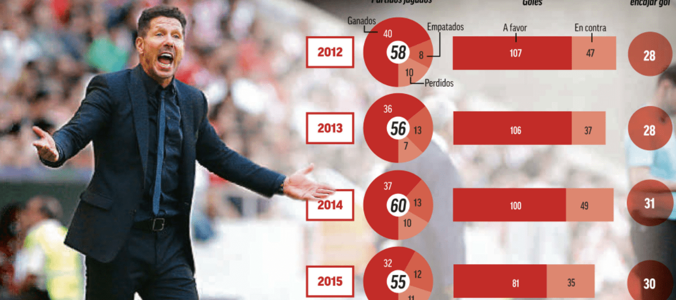 2. Diego Pablo Simeone ha dirigido 398 encuentros en LaLiga, con un balance de 242 triunfos, 93 empates y 63 derrotas, promediando 2’06 puntos por encuentro
