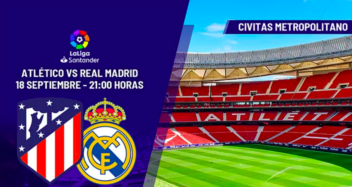 El encuentro de LaLiga entre Atlético de Madrid y Real Madrid de la jornada 6 en Primera división, se podrá ver por televisión en directo, a partir de las 21:00 horas, a través del canal Movistar LaLiga, de dicha plataforma de televisión de pago y que comparte derechos con Dazn y Orange.