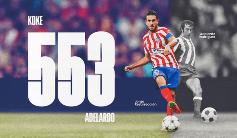 El 19 de septiembre de 2009, con tan solo 17 años, en el Camp Nou, contra el Barcelona, debutó Koke Resurrección con el Atlético de Madrid, con el que este domingo alcanzó a Adelardo Rodríguez como el futbolista con más partidos de los 119 años de existencia del club rojiblanco, con 553 encuentros entre todas las competiciones, que expresan inequívocamente la dimensión del actual capitán en el equipo.