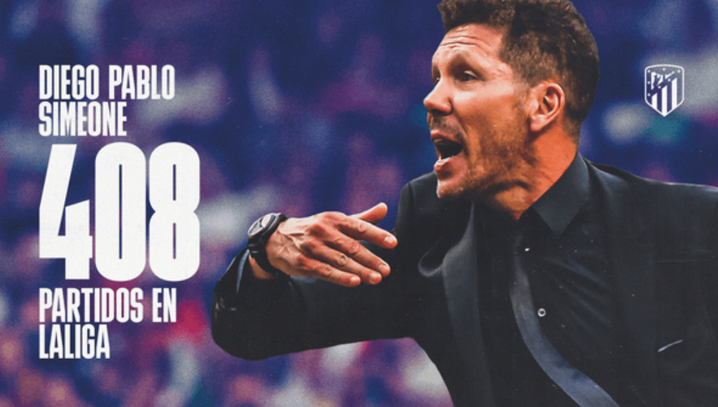 Nadie ha dirigido ya más partidos al Atlético de Madrid en LaLiga que Diego Simeone, quien rebasó este domingo a la leyenda más grande del banquillo del club, Luis Aragonés, que se quedó en 407 partidos por los 408 que ya acumula el técnico argentino, en su enésimo récord de la historia de la entidad, del que es el entrenador más ganador, con más títulos o con la mejor racha sin perder en 119 años.