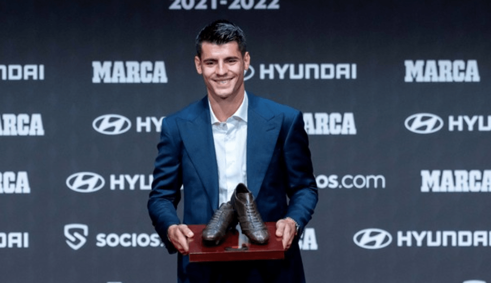 Álvaro Morata ha sido galardonado con el premio al mejor jugador de la selección española de la temporada 2021-22 en los Premios Marca que se celebró este miércoles 28 de septiembre en el Teatro Goya a las 13:00 horas.