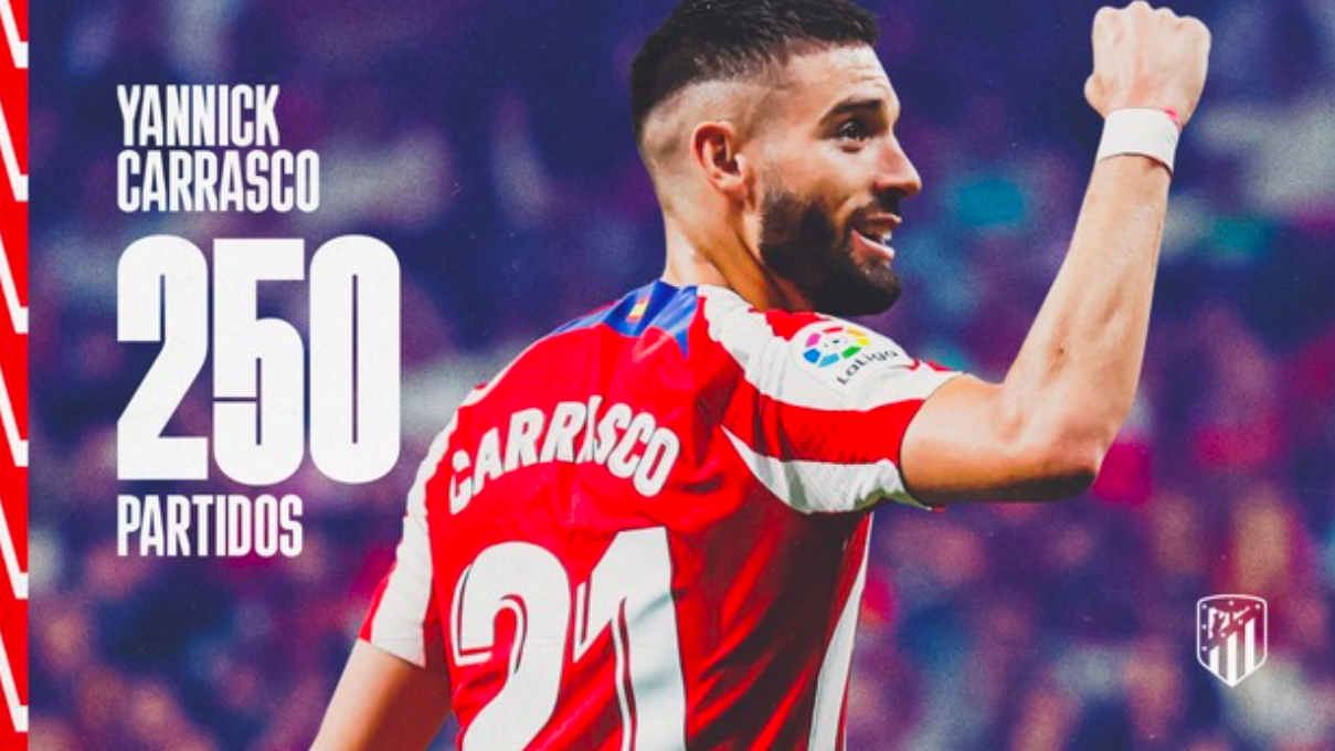 Han pasado algo más de siete años desde que debutó el talentoso futbolista belga Yannick Carrasco con el Atlético de Madrid. El sábado, ante el Sevilla, agrandó más su leyenda, ya que cumplió 250 partidos defendiendo la camiseta colchonera, anotando además uno de los tantos de la victoria por 6-1.