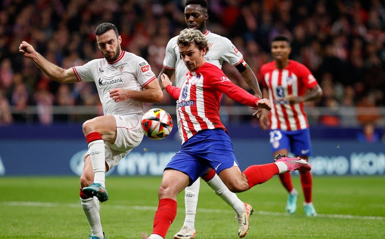 No echaban de menos los ‘leones’ a Nico Williams, ausente por lesión, ya que sus rivales carecían de brillantez. A la izquierda volcaban los del ‘Cholo’ sus intentonas, con Memphis combinando con Samu Lino, sin que en el lado contrario apareciese Nahuel Molina. El damnificado seguía siendo Griezmann, que poco antes del descanso mandó fuera un tiro raso.