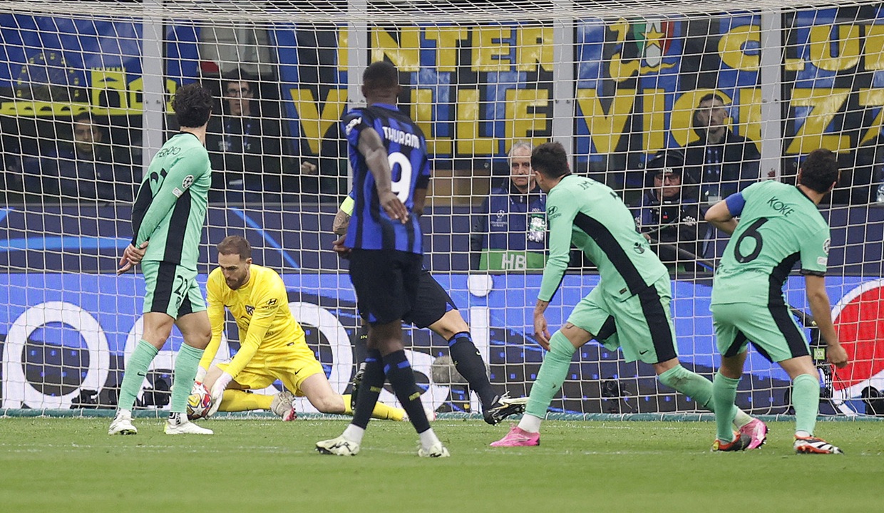 A pesar de esa jugada, fue el Inter quien llevó el claro dominio del juego, y en el minuto 36 puso a prueba la concentración de Jan Oblak. Nicolò Barella centró al corazón del área y, con mayor brinco que Josema Giménez, cabeceó fuerte Lautaro Martínez a las manos del portero rival.