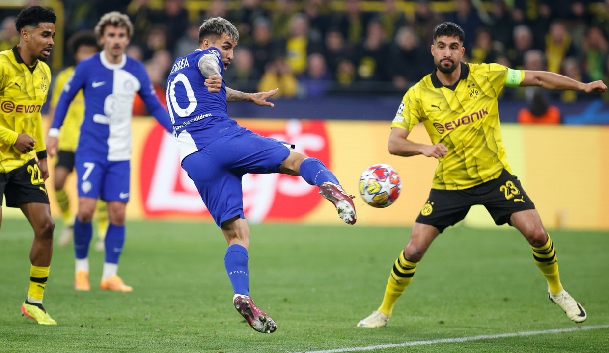 Respondió el Atlético de inmediato, en un balón largo de Axel Witsel que peinó Antoine Griezmann y habilitó a Álvaro Morata para marcharse en velocidad, casi en soledad, hacia la portería defendida por Gregor Kobel. El número 19 colchonero, ante la rauda salida del guardameta a sus pies, picó la pelota sin destreza y envió fuera su remate.