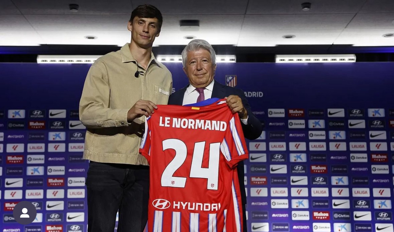 Robin Le Normand fue presentado por el Atlético de Madrid. El francés, con el número 24, atendió a los medios acompañado por Enrique Cerezo.