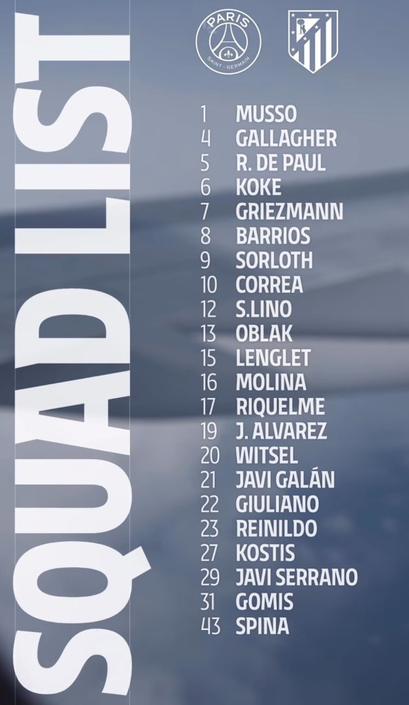 Simeone la bajas de Giménez, Lemar, Llorente, Azpilicueta y Le Normand, mientras que Luis Enrique no puede contar con Lucas Hernández, Kimpembe ni Gonçalo Ramos.