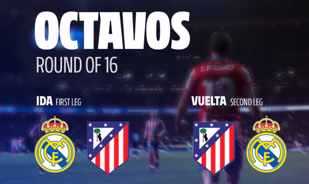 El Real Madrid será el adversario del Atlético en octavos de final de la presente edición de la Liga de Campeones, tal y como ha dictaminado el sorteo celebrado este viernes en la Casa del Fútbol Europeo en Nyon (Suiza). La eliminatoria vivirá su primer asalto en el Santiago Bernabéu el 4 o 5 de marzo, mientras que el encuentro de vuelta se celebrará en el Metropolitano el 11 o 12 del mismo mes en fechas y horarios pendientes de confirmación.