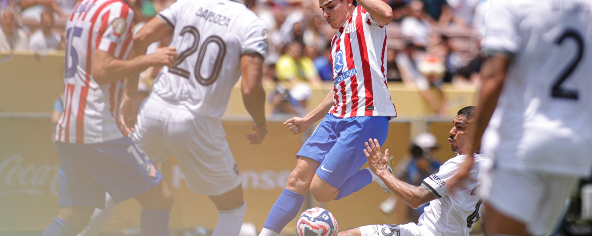 En el Rose Bowl de Pasadena, el Atlético tuvo que sobreponerse a un inicio más inspirado de los cariocas, con mayoría en las gradas y que ya a los diez minutos probaron a Jan Oblak; Jefferson Savarino ganó la espalda a la defensa colchonera y se plantó solo ante el portero esloveno, que sacó una mano salvadora.