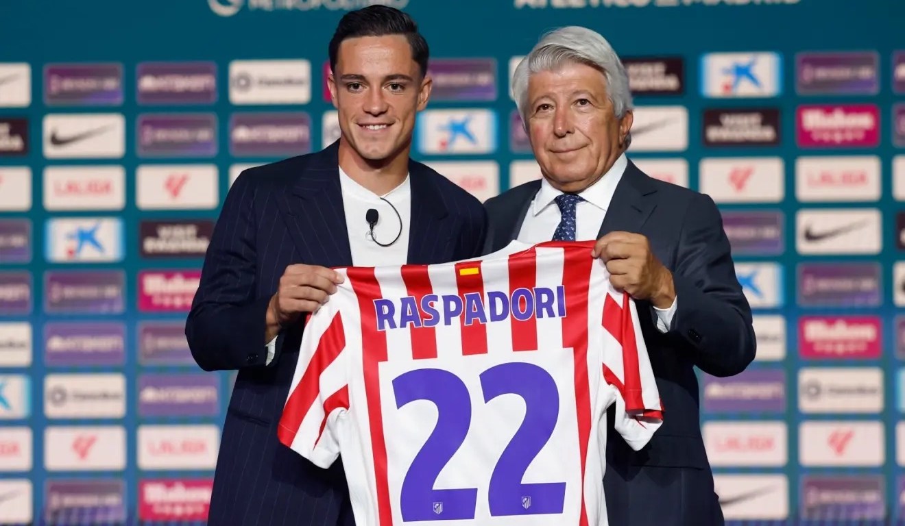 Raspadori fue presentado por el Atlético de Madrid. El neerlandés lucirá el 22 y tanto él como el presidente, Enrique Cerezo, atendieron a los medios.
